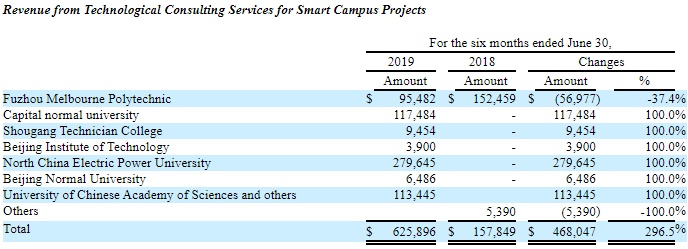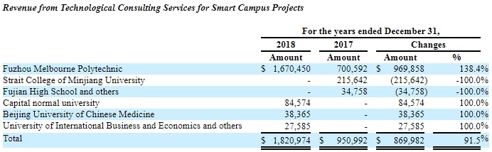智通财经APP了解到,华夏博雅在2017年进军智能园区解决方案领域,该业务现在是公司增长的顶梁柱。2018年,该业务收入182万美元,同比增长91.5%。2019上半年该业务收入62.6万美元,同比增长296.5%。从明显项来看该项业务,该业务在2018年和2017年的收入均主要来自福州墨尔本理工职业学院。