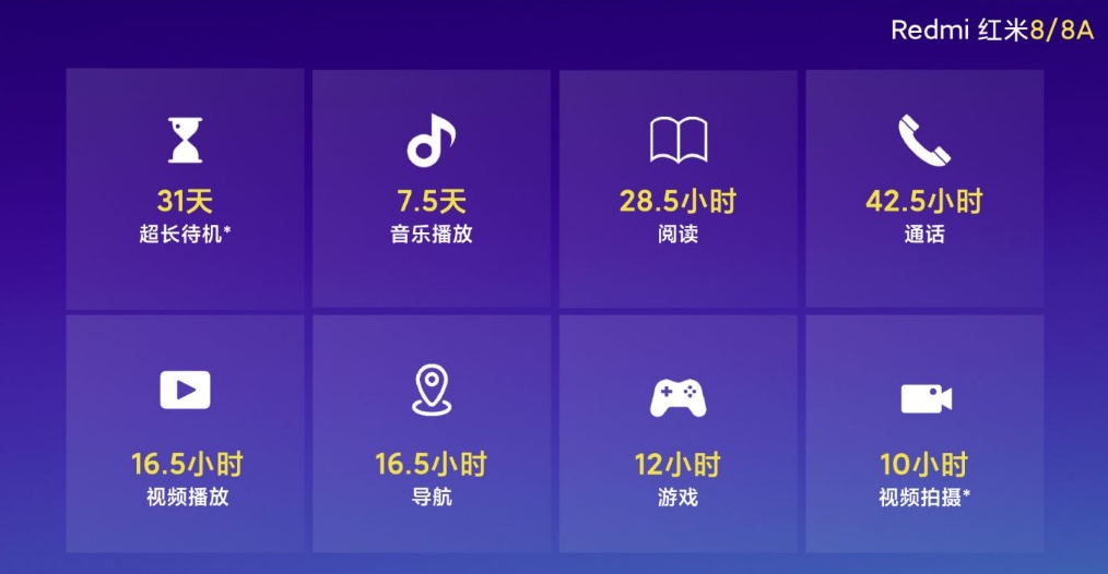 此次发布的Redmi红米8系列产品,全系支持18W快充、标配Type-C接口和Redmi史上最大容量5000mAh大电池,彻底解决以往入门机5W慢充、低容量电池一天两充的尴尬续航痛点;3GB起步的内存容量让系统更加流畅,全系将搭载最新发布的MIUI11系统。