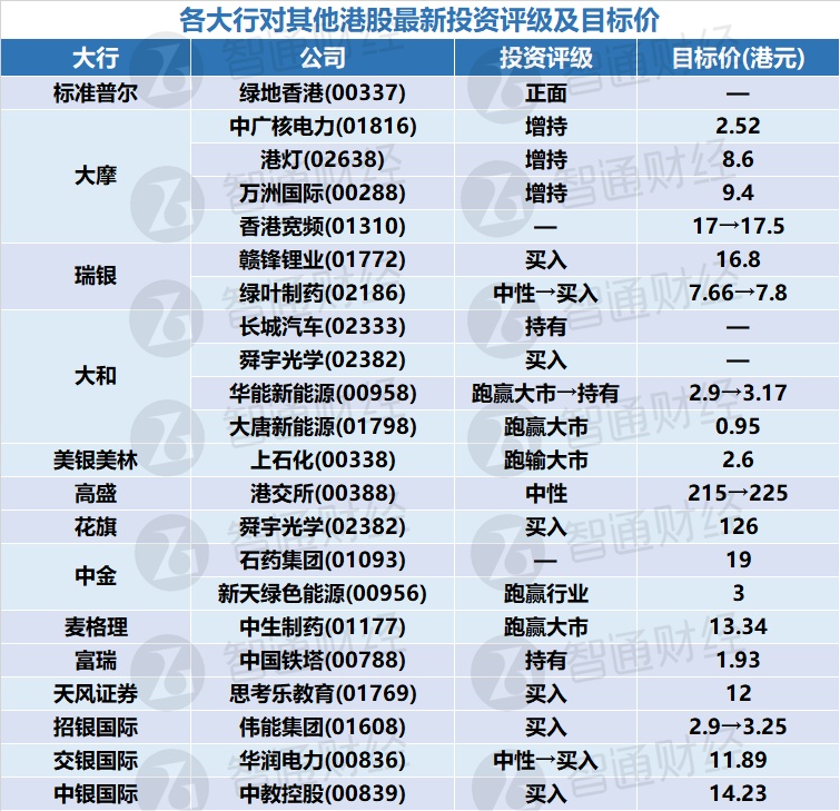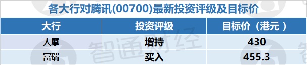 一、各大行对腾讯(00700)最新投资评级及目标价