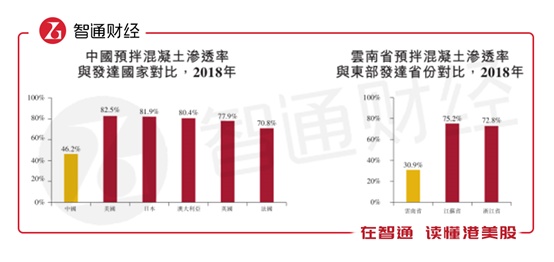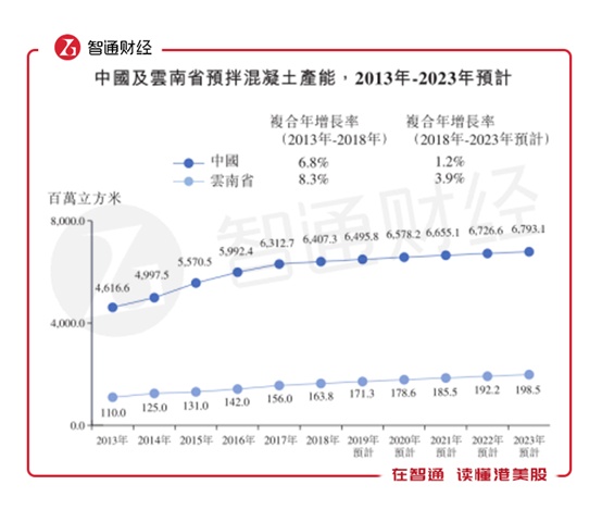 除了持续西部基建需求外,渗透率快速提升也在助推预拌混凝土市场规模增长。智通财经APP了解到,2018年,中国预拌混凝土渗透率达到46.2%,远低于美国、日本及澳大利亚超80%的渗透率,随着政府加强对现拌混凝土的管控,以及绿色高性能混凝土在行业中更广泛的应用,全国预拌混凝土渗透率2023年预计将达到51.8%。而起步较晚的云南省2018年渗透率仅为30.9%,还远低于全国平均水平的46.2%,可提升空间更大,目前云南省政府和各州市政府对预拌混凝土鼓励政策已有进一步的落地。专业机构预计,2023年云南省预拌混凝土产量将达到82.1百万立方米,行业生产价值增至311亿元,复合年增长率为8.5%。