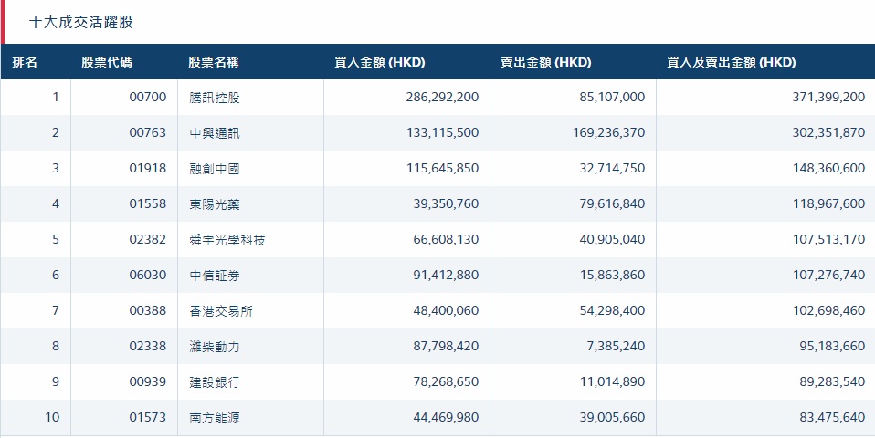 中国神华(01088)、潍柴动力(02338)、中信证券(06030)分别获净买入1.2亿、8041万、7554万港元。此外,北水主要沽售中兴通讯(00763)、东阳光药(01558),净卖出额分别为3612万、4026万港元。