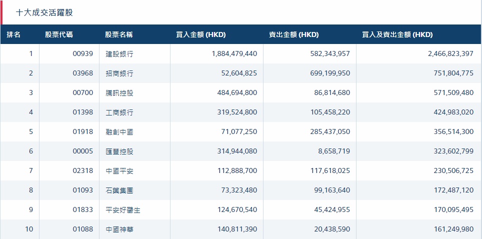 智通财经APP获悉,10月14日港股市场,北水净流入32.32亿。北水净买入最多的个股分别是建设银行(00939)、腾讯(00700)、汇控(00005),净卖出最多的个股分别是东阳光药(01558)、中兴通讯(00763)、港交所(00388)。