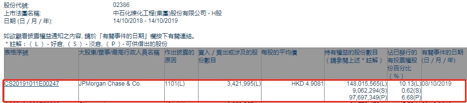 智通财经APP获悉,联交所最新资料显示,10月8日,摩根大通增持中石炼化工程(02386)约342.20万股,每股作价4.9081港元,总金额约为1679.55万港元。增持后持股数目约为1.48亿股,持股比例为10.13%。