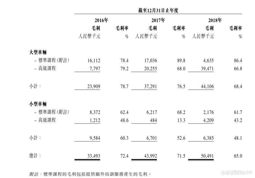 向中国际在2016年至2017年间大幅降低各项课程价格,最高降幅达到37%。因此,向中国际的大型车辆和小型车辆分别贡献的课程毛利率整体上也是逐步下滑的。