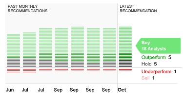 有数据统计显示,在接受调查的30位投资分析师中,有18位对台积电给予“买入”评级,5位分析师认为该公司将“跑赢大市”,另外有5位建议“持有”。而给予“跑输大市”以及“卖出”评级的分析师分别有1位。