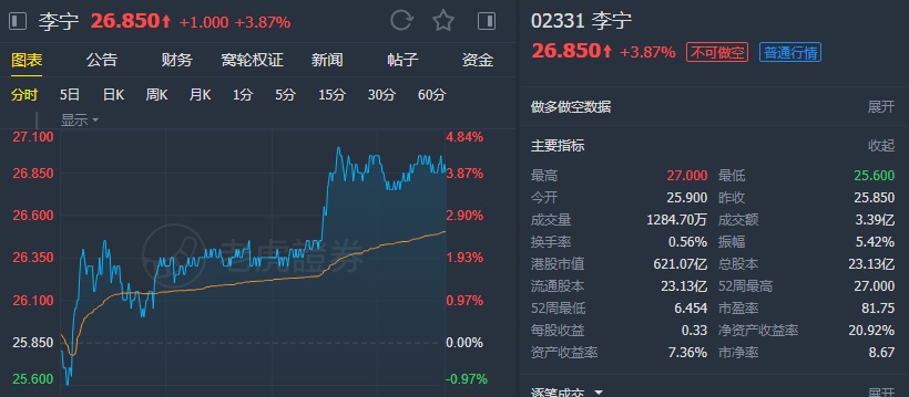 该行相信,李宁在行业具良好布局以提升市场占有率,维持对其“买入”投资评级,上调对其目标价由24港元升至31.6港元,此相当预测2024财年市盈率22倍,并调高对其2019至2021财年净收益预测1至9%,基于销售及毛利表现较佳。