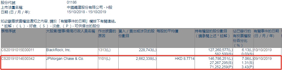 智通财经APP获悉,联交所最新资料显示,10月9日,摩根大通增持中国铁建(01186)266.238万股,每股作价8.7714港元,总金额约为2335.28万港元。增持后最新持股数目约为1.47亿股,最新持股比例为7.06%。