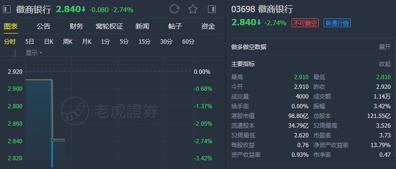 基于股本成本上升,该行下调徽商银行目标价,自3.2港元降至2.9港元,维持“沽售”评级。