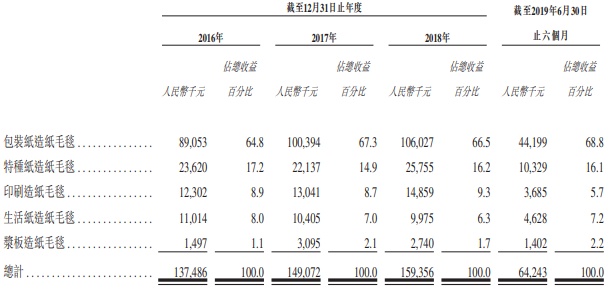 智通财经APP从招股书了解到,环龙的产品主要用在:包装纸、特种纸、印刷纸、生活纸、浆板。过去三年,包装纸造纸毛毯一直占据主导地位,并且各种产品占比和全国用纸种类占比相似。从总体收入情况来看,收入增速在下降。2017年总收入同比增长8.43%,2018年总收入同比增长6.9%。