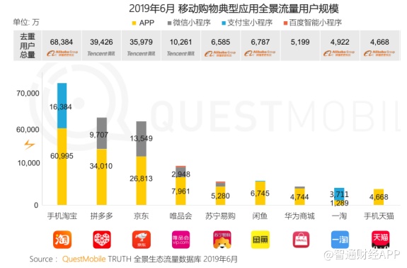 其他包括唯品会、苏宁易购等在内的电商平台,全景用户规模在1亿以下。