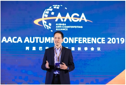 (图说:阿里巴巴品牌合作高级副总裁姚允仁介绍阿里知产保护体系)