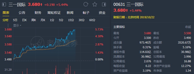 该行表示,维持三一国际“买入”评级,目标价5.41港元。