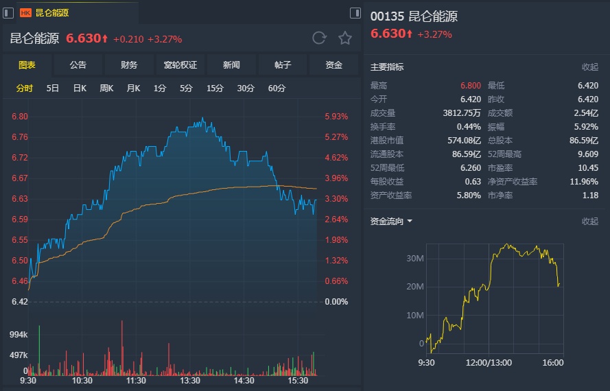 该行认为,昆仑可能是行业整合的关键者,因为其战略定位是中国最大的天然气供应商中石油(00857) 之唯一下游天然气平台。该行维持昆仑“买入”评级,因其估值吸引及高于同业之燃气销量升幅,目标价为11.1港元。