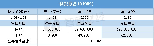 智通财经APP获悉,10月17日,世纪联合(01959)配售结束。配售招股价区间为1.01-1.23港元,最终定价1.08港元,每手2160港元。