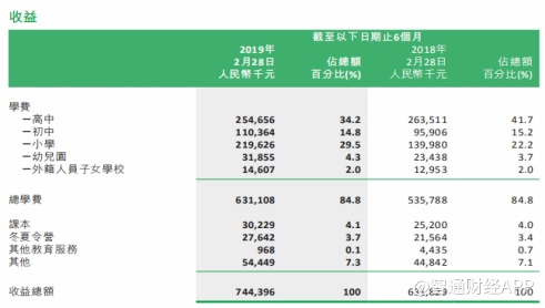 截至2019年2月28日止6个月中期,枫叶教育实现收益约人民币7.44亿元(单位下同),同比增加17.8%;经调整纯利约3.04亿元,同比增加25%;公司拥有人应占期内溢利约2.84亿元,同比增长20.2%。