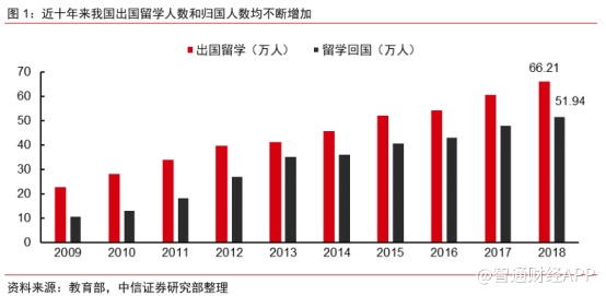 根据教育部公布的《2018 年度我国出国留学人员情况统计》数据显示,中国出国留学人数近10年呈逐年递增趋势,2018 年度中国出国留学人员总数为 66.21 万人,同比增长 8.83%。