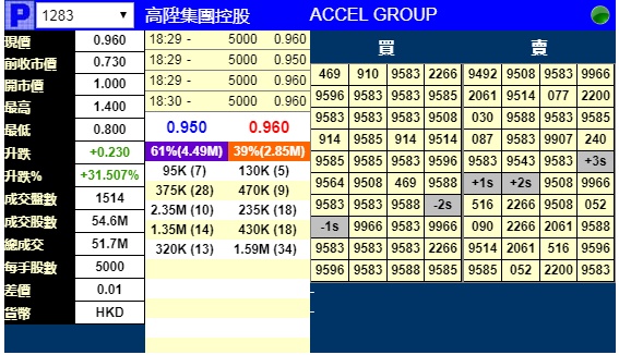 智通财经APP获悉,高升集团(01283)将于10月18日挂牌,上市前夕,辉立证券暗盘交易显示其收报0.96港元,较招股价0.73港元涨31.507%。每手5000股,不计手续费,每手赚1150港元。
