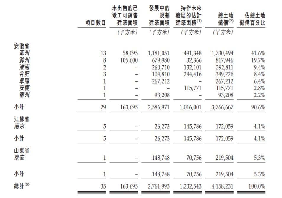 于2019年8月31日,公司共有35个处于不同开发阶段的项目,覆盖三个省的九个城市,拥有总土地储备4.2百万平方米。据安徽省房地产商会发布的数据,以2018年在安徽省的合约销售额计,该公司位居或主要市场在安徽省房企的第2名;以2018年在安徽省的新增土地储备计,位列总部或主要市场在安徽省的房企的第1位。根据亿瀚智库,按合约销售额计,三巽于中国典型房企Top 200的排名由2017年的第171名升至2018年的第130名。