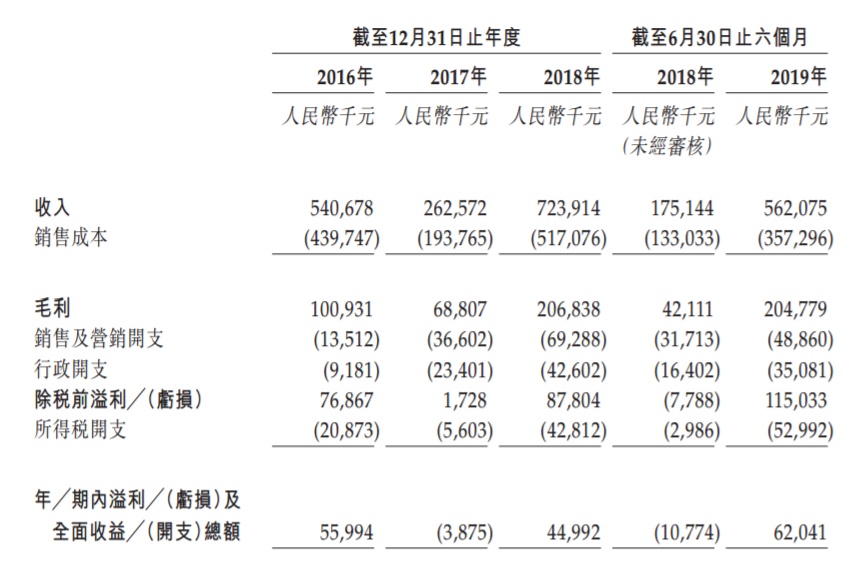 于往绩记录期间,三巽的毛利由2016年的100.9百万元减少至2017年的68.8百万元,并于2018年增加至206.8百万元,以及随后由截至2018年6月30日止六个月的42.1百万元增加至2019年同期的204.8百万元。于同期,其毛利率由2016年的18.7%上升至2017年的26.2%,并进一步上升至2019年 的28.6%,以及随后由截至2018年6月30日止六个月的24.0%上升至截至2019年6月30日止六个月的36.4%。