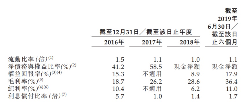 其收入由2016年的人民币540.7百万元增加至2018年的723.9百万元。土地储备由2016年12月31日的1.1百万平方米增加至2019年8月31日的4.2百万平方米。于2016年及2017年12月31日,净资产负债比率分别为41.2%及58.5%。于2018年12月31日及2019年6月30日,录得净现金状况。