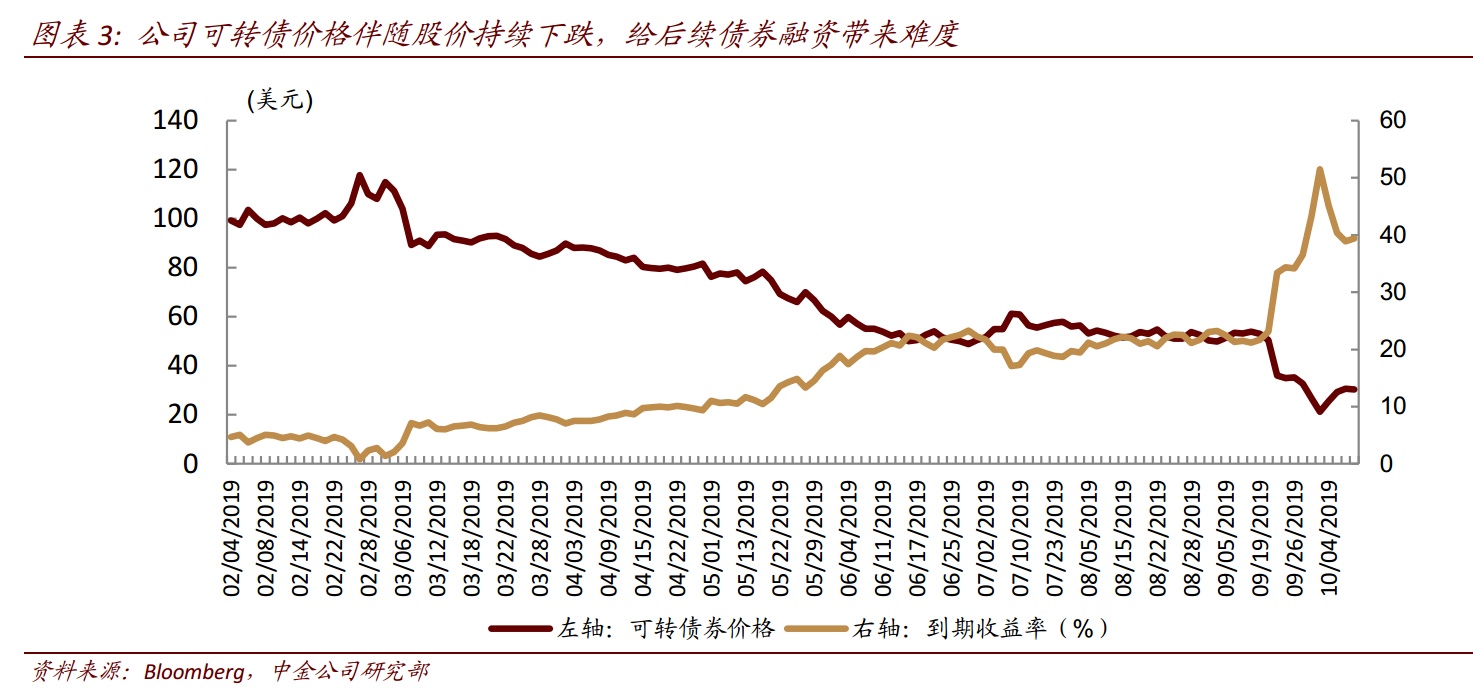 公司未来营收端压力较大,短期自我造血能力有限,面临商业模式重塑等问题,目前中金暂时维持2019e/2020e/2021e亏损预测113.4/84.5/66.4亿元,并暂时维持中性评级和2.5美元目标价。