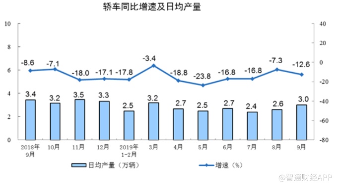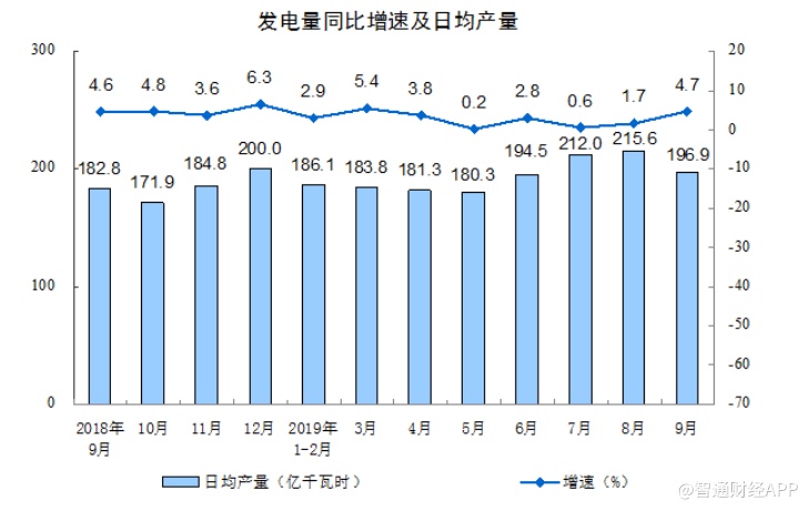 分行业看,9月份,41个大类行业中有35个行业增加值保持同比增长。农副食品加工业下降1.2%,纺织业增长0.6%,化学原料和化学制品制造业增长3.3%,非金属矿物制品业增长7.0%,黑色金属冶炼和压延加工业增长9.5%,有色金属冶炼和压延加工业增长7.7%,通用设备制造业增长3.5%,专用设备制造业增长7.0%,汽车制造业增长0.5%,铁路、船舶、航空航天和其他运输设备制造业增长4.7%,电气机械和器材制造业增长12.1%,计算机、通信和其他电子设备制造业增长11.4%,电力、热力生产和供应业增长5.4%。