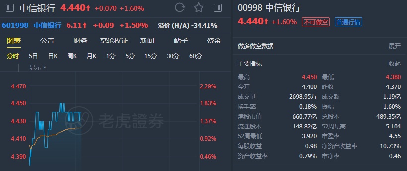 智通财经APP获悉,中金发布报告称,中信银行(00998)早前公布第三季度业绩,中信银行的表现不错,中金公司就上调中信银行的A股目标价11%至7.16元人民币,以及H股目标价7%至5.62港元,维持“中性”评级。