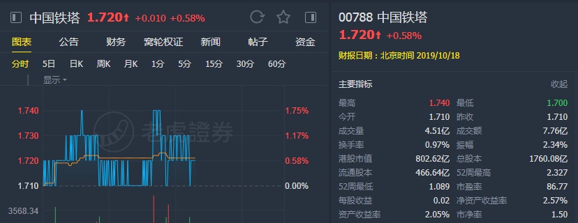 该行称,中国铁塔有望实现全年净收益高双位数增长,派息也可能高于上年同期。维持其“买入”评级,目标价2.3港元。