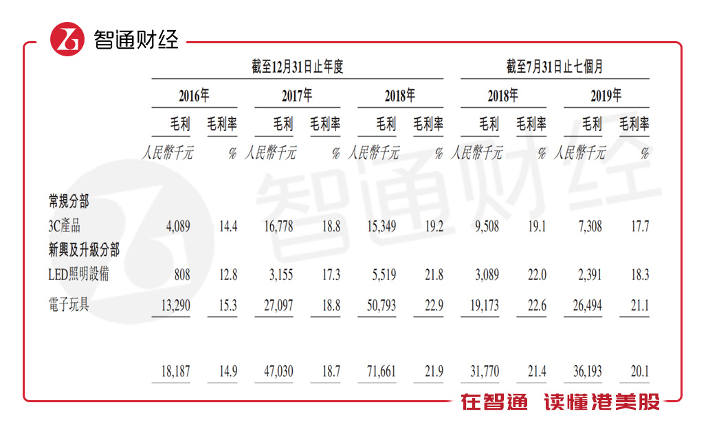 电子玩具毛利率高,同时作为该公司的核心收入来源,也贡献了核心的毛利来源,首七个月,该分类毛利贡献73.2%。