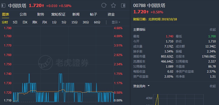 该行表示,尽管维护收入调整,中国铁塔已完成该行今年全年收入、EBITDA及净收益预测的分别73.1%、74.7%及66.9%。予其“跑赢大市”评级,目标价2.55港元。