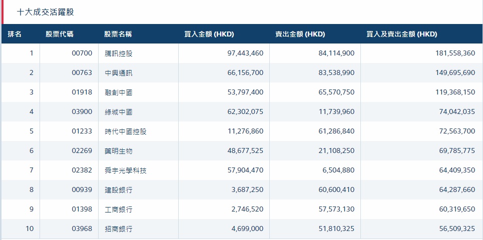 腾讯(00700)、舜宇光学(02382)分别获净买入2.24亿、1.86亿港元。此外,北水主要沽售中兴通讯(00763),净卖出额为1738万港元。