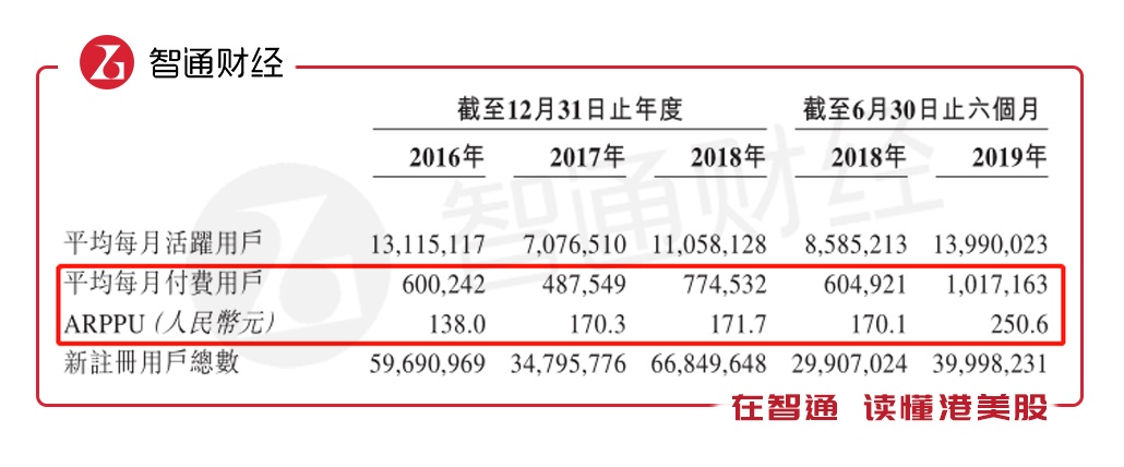 主要经营指标上,公司用户增长稳定。截至2019年6月30日止6个月,公司MAU达1399万,同比增长约63%,较2018年底增长26.51%。除此之外,公司平均每月付费用户、ARPPU也分别实现了68.15%、47.33%的快速双增长,付费用户表现提升尤为显著。