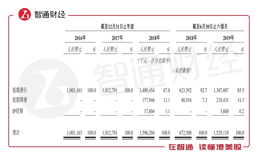 其中,游戏发行一直以来均是公司的主要营收来源。其中,游戏发行所带来的收入占整体持续经营业务收入的比重为100%。然而,情况于2018年开始出现转机,游戏开发在公司经营业务中也占据了一席之地,成为中手游另一重要的新收入来源。