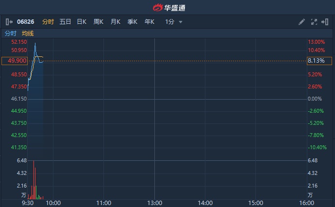 智通财经APP获悉,昊海生科将于今日在A股科创板正式开启申购,发行价为每股89.23元,成为科创板目前为止最高发行价公司。昊海生物(06826)高开高走,盘中一度涨超12%,截至发稿,涨7.91%,报49.8港元,成交额1139.71万港元。