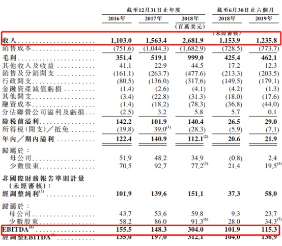 于2016年、2017年、2018年及截至2019年6月30日止六个月,该公司的收入分别是11.03亿美元、15.63亿美元、26.82亿美元和12.36亿美元,其中复合年增长率约为34%。