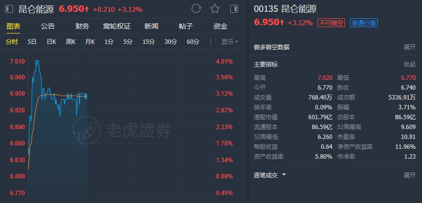 智通财经APP获悉,大和发布报告称,上调昆仑能源(00135)评级,由“跑赢大市”升至“买入”,同时下调对其目标价18.75%,由9.6港元调低至7.8港元。