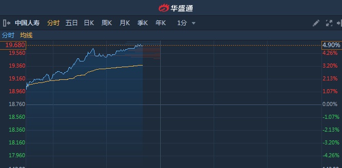 智通财经APP获悉,中国人寿(02628)于上周五(10月18日)晚间发盈喜,前三季度归母净利润预计同比增长180%到200%。该股今日高开高走,暂领涨蓝筹,截至10时39分,涨4.9%,报价19.68港元,成交额5.439亿。