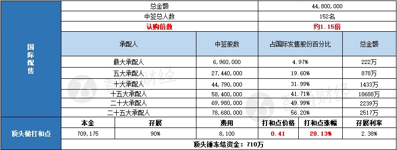 国际配售申购人数未披露,认购倍数约1.15倍。