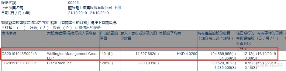 智通财经APP获悉,联交所最新资料显示,10月16日,Wellington Mgt增持龙源电力(00916)1160.79万股,每股作价4.02港元,总金额约为4666.38万港元。增持后最新持股数目约为4.05亿股,最新持股比例为12.12%。