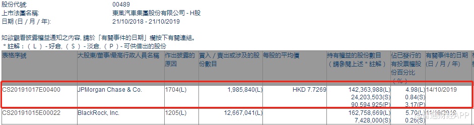 智通财经APP获悉,联交所最新资料显示,10月14日,摩根大通减持东风集团(00489)198.58万股,每股作价7.73港元,总金额约为1535.02万港元。减持后最新持股数目约为1.42亿股,最新持股比例为4.98%。