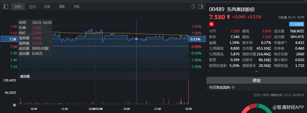截至今日收盘,东风集团(00489)涨0.53%,报7.58港元。