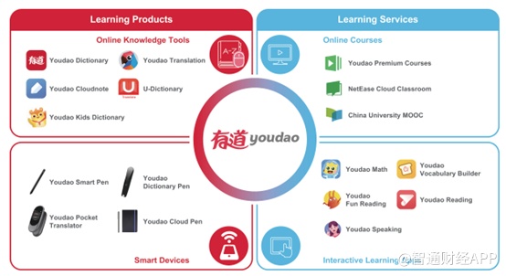 招股书显示,网易有道的核心业务主要分为四个部分:一、在线学习工具,包括有道词典、有道翻译、有道云笔记等;二、智能硬件,包括有道翻译王、有道智能笔、有道词典笔等;三、在线课程,包括有道精品课、网易云课程、中国大学MOOC等;四、交互式学习应用,包括有道数学、有道背单词、有道乐读等。