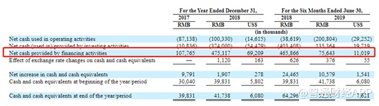 由于公司的经营现金流常年为负,所以不能给公司带来现金收入,从现金流量表看,2017年至今,公司的运营净流出现金约3.88亿。资金来源主要还是融资端,当然,这也是在线教育企业的常态。