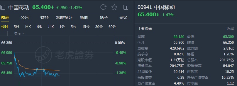 该行表示,维持中国移动“买入”评级,目标价85港元。