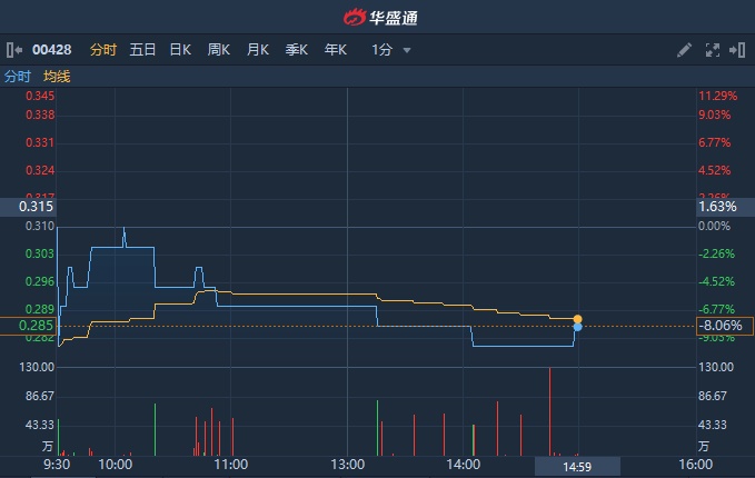 日发行约2.4亿股供股股份,每股发行价0.28港元,较10月18日收市价折让11.11%。截至发稿,跌8.06%,报0.285港元,成交额314.79万港元。