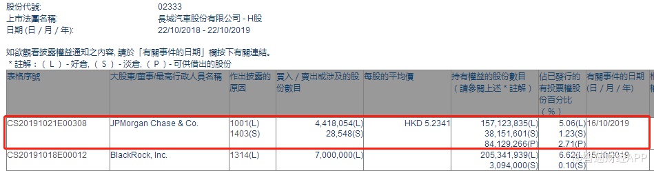智通财经APP获悉,联交所最新资料显示,10月16日,摩根大通增持长城汽车(02333)441.81万股,每股作价5.2341港元,总金额约为2312.48万港元。增持后最新持股数目约为1.57亿股,最新持股比例为5.06%。