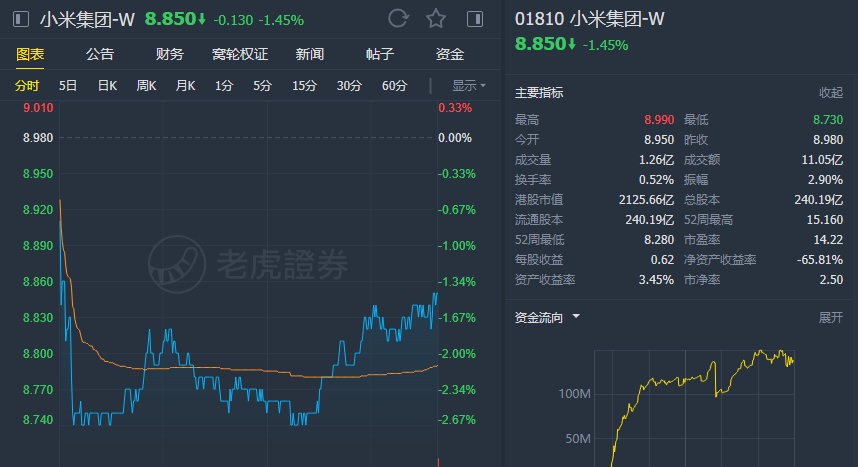 该行表示,小米将是未来内地5G智能电话换机潮的主要得益者之一,明年将可恢复增长。小米CEO雷军日前在乌镇第六届世界网际网路大会上预告,小米明年计划推出10款以上的5G手机,幅盖高端至低端市场,长线而言,5G网络推出,将提高数据使用量,并为小米网络服务货币化提供商机,以及推动ARPU增长。