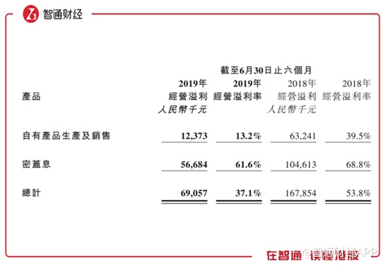 毛利率下滑,销售规模下降的同时,销售费用和行政费用却没有同步下降,期内销售费用和行政费用合计9498万,同比只下降了6.6%,导致集团的经营利润率大幅下滑。据业绩报告显示,自有产品经营溢利率13.2%,远低于去年同期的39.5%,密盖息经营溢利率61.6%,同样低于同期的68.8%。