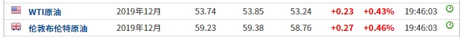 截止发稿,WTI原油涨0.43%,报53.74美元/桶。布伦特原油涨0.46%,报59.23美元/桶。