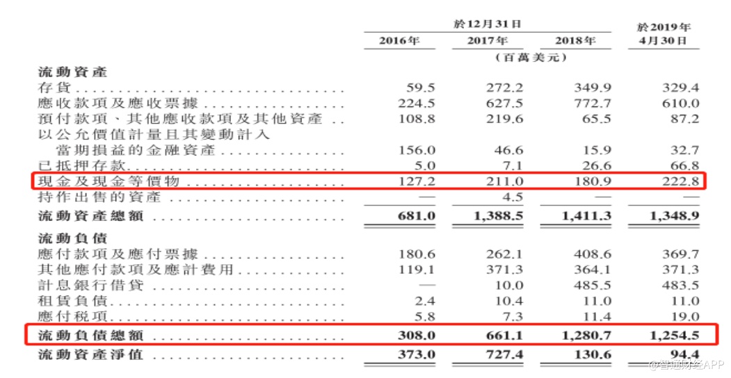 招股书显示,截止到2018年年末JS环球的总资产为33亿美元,同期总负债为28.38亿美元。其中计息银行负债在2018年末达到4.86亿美元,应付款项和应付票据,达到4.09亿美元;其他应付款也达到了3.64亿美元。而截止到2018年末,JS环球账面上的现金和现金等价物仅为1.81亿美元,流动负债总额则高达12.81亿美元。